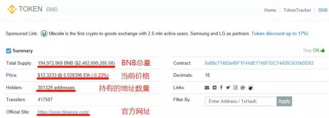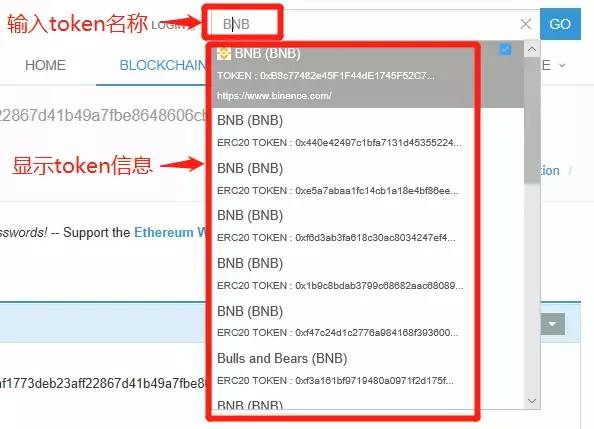 输入你要查询的 TOKEN 名称,以币安交易所的平台币BNB为例: