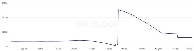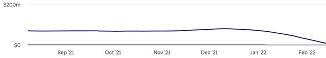 储备池最初创建时注入了7000万美元,辛辛苦苦一年下来赚了不到1000万美元,但是从2021年12月开始,Anchor就开始亏本,不到2个月,亏到只剩下700万美元。