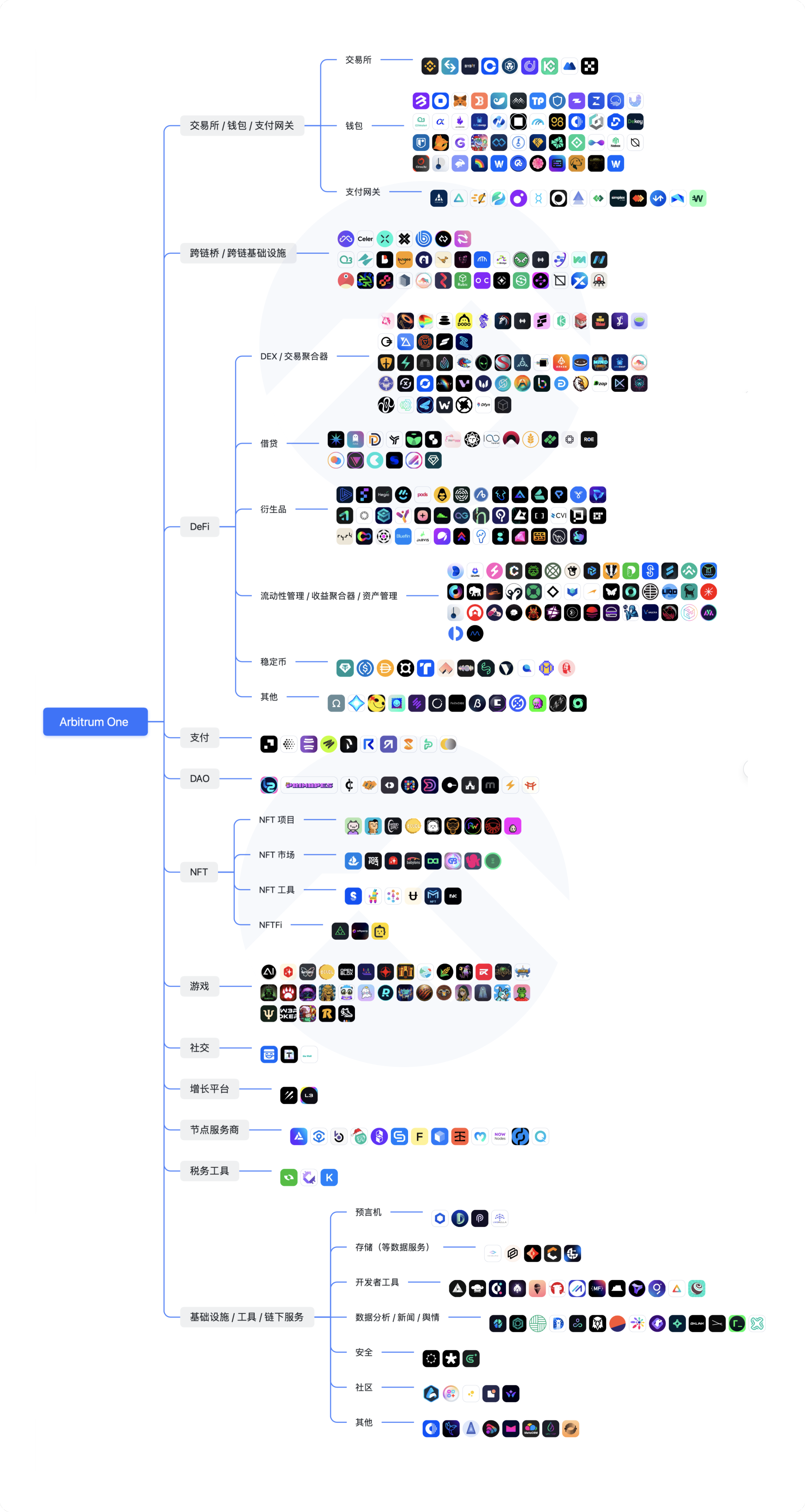 项目信息来自 Arbitrum 生态项目门户网站及 DefiLlama,笔者选取了具有一定 TVL 或用户量的项目,请读者在选择参与的项目时注意风险控制。如有遗漏欢迎补充。