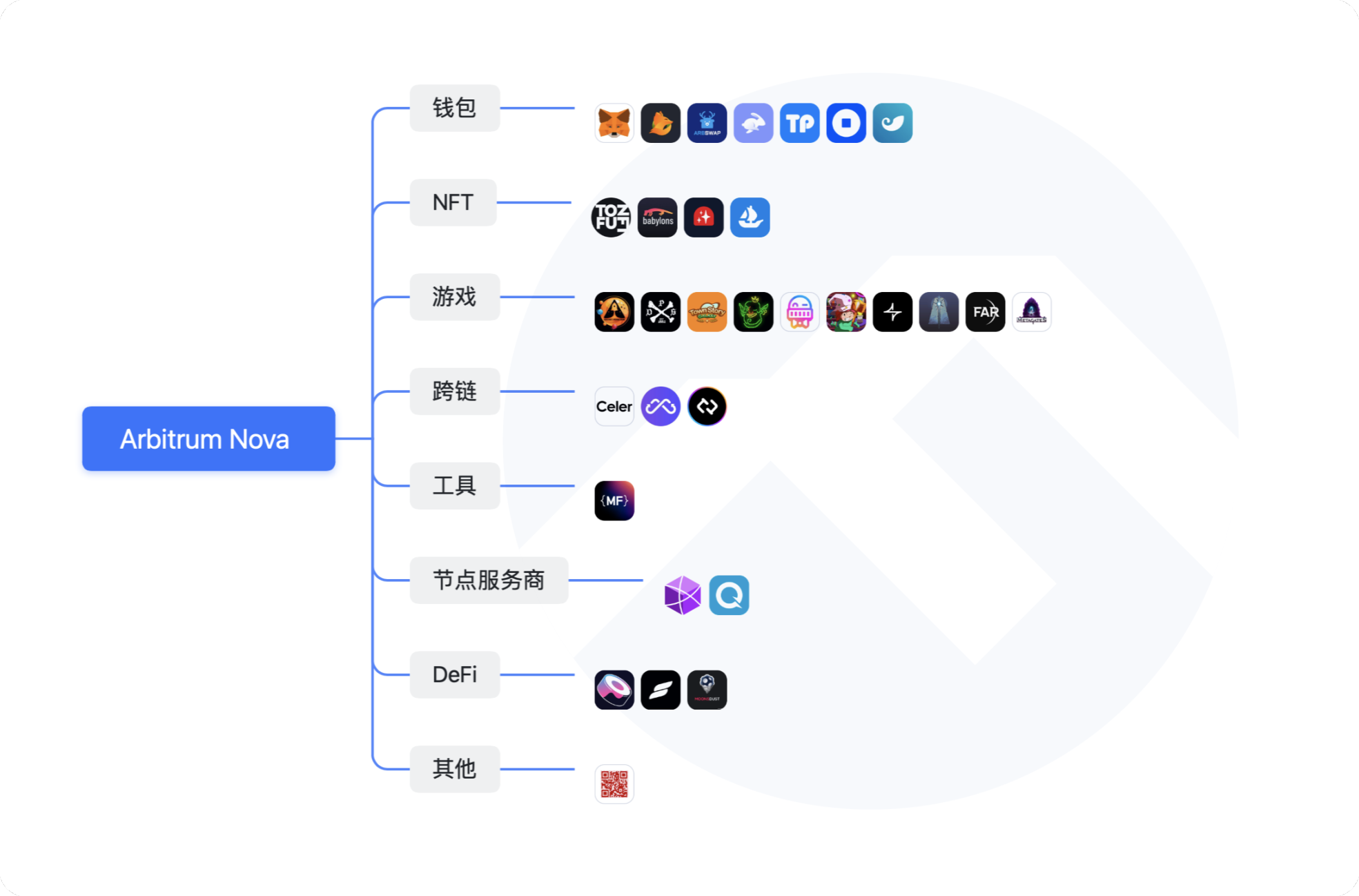 游戏由于 Arbitrum 上交易的低成本和高速优势,使得游戏类项目得以更好地发展。目前 Arbitrum 上的游戏生态项目包括了 Game7、The Beacon、Trident 等。