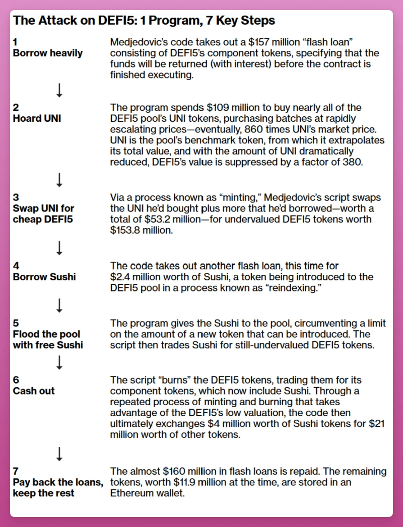 指数金融黑客2021 年 10 月,Indexed Finance 的 DEFI5 指数被利用了 1800 万美元。攻击者利用了指数池通过闪贷交易进行再平衡的方式。