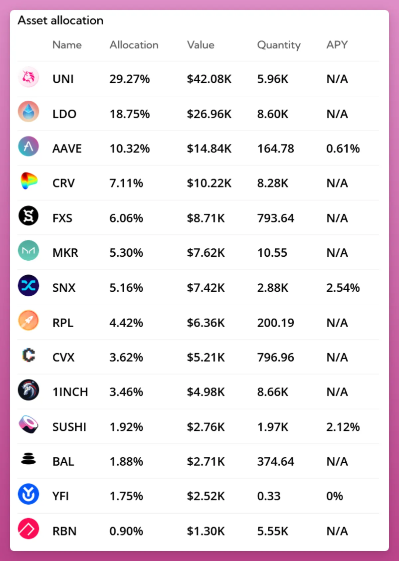 PieDAO 是指数的早期采用者,最近宣布从被动管理转向主动管理,"持有人管理 DAO 拥有的基金,以创造收益"。