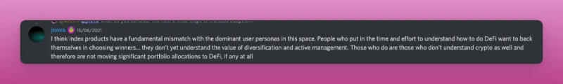 但对于链上指数来说,现在还为时过早,许多加密货币原住民认为他们可以比中心化解决方案更好地管理自己的头寸,叙事不在这里。