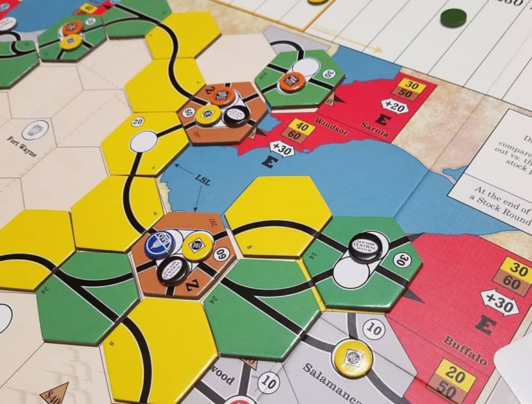 受到Will Robinson《Unblocking On-Chain Games: Part Two — The 18xx Genre》的启发,我将以 18xx 游戏为例以描述移植型的链上游戏。18xx 是一种回合制模拟经营游戏,游戏背景是在 1846 年,3-5 位铁路大亨在 1846-1935 年间通过在中西部投资和经营铁路公司来竞争赚钱并建立最佳股票投资组合,可以理解为更加复杂的大富翁。每个公司都有自己的金库,用来铺设铁轨或者升级铁轨和购买火车,而这个金库是完全独立于玩家的个人股票组合和银行的。游戏的关键在于平衡何时向您的公司注资以采取行动,或者全额支付您自己和其他股东的费用,这两种行动都会影响公司的股价。