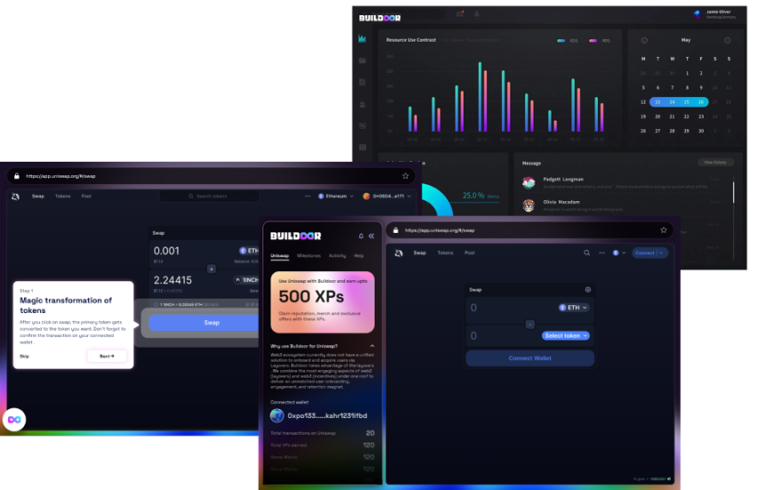 Buildoor Labs 是一种无代码工具,可用于在 Web3 中加入、吸引、留住用户,支持以太坊、Polygon 等 L1/L2 网络,其使用简单、游戏化和互动的沉浸式体验帮助用户在 Web3 应用中的 Onboarding,启动代币激励用户与 dApp 交互,添加排行榜并奖励参与的用户,以此来增加用户粘性。此外,还为项目方提供分析用户参与度和用户保留率的活动分析仪表板。