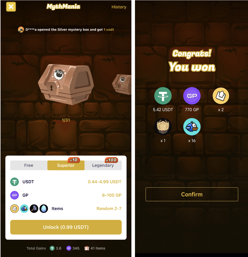 Michael开始在小游戏上趁胜追击,相继推出了《Magic Pot》和《MythMania》。其中《Magic Pot》共消耗了超过100万只Merge Bird NFT,是Casual GameFi中最大的资产消耗场景。而在《MythMania》中,通过付费,盲盒激励可以放大10倍收益,一下使整个平台实现了持续的盈利。尤其在平台尚未发行TGate.ion来做用户激励的情况下,实现盈亏平衡并保持增长,在熊市里显得尤为难得。