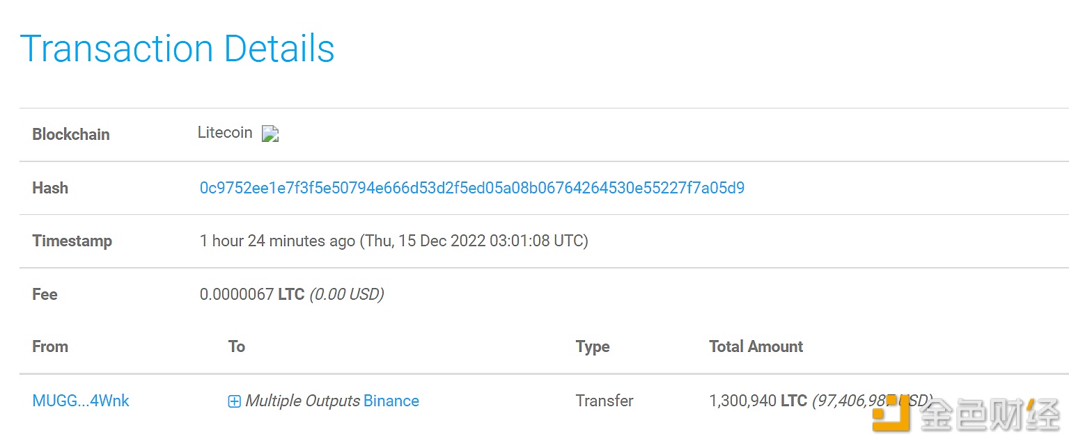 据Whale Alert监测数据显示,北京时间11:01:08,130万枚LTC(约9740万美元)从未知地址转至币安。