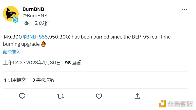 BurnBNB发布推特表示,BNB实时销毁量为14.9万枚,约合5595.03万美元。