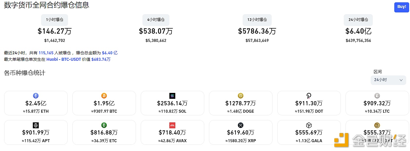 数据显示,过去24小时全网合约爆仓金额达到6.4亿美元,其中比特币合约爆仓金额为2.45亿美元,以太坊合约爆仓金额为1.95亿美元。