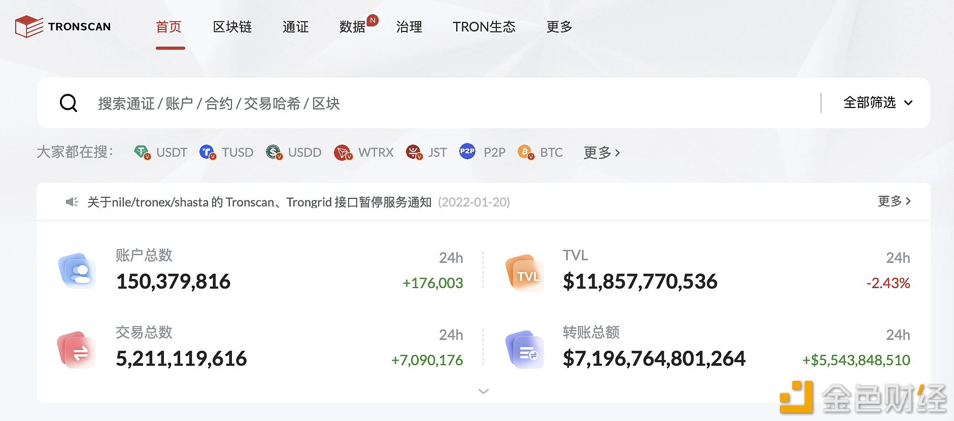 据官方消息,2023年4月3日,TRONSCAN最新数据显示,波场TRON账户总数达到150,379,816,正式突破1.5亿。波场TRON各项数据稳中前进,波场生态逐渐强大的同时,也将迎来更多交易量。