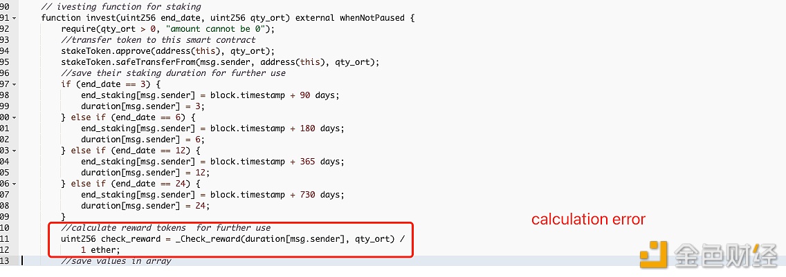 1月17日消息,据Fairyproof检测,BSC上的 OMNI Real Estate TGate.ion (ORT) 项⽬遭受攻击,攻击原因疑似为合约代码有漏洞。 攻击者地址为:0x9BbD94506398a1459F0Cd3B2638512627390255e,其中⼀个攻击合约为 0x0eFfECA3dBCBcda4d5e4515829b0d42181700606,攻击初始gas来源 FixedFloat热钱包,攻击者获利超过236个BNB,价值约70705美元。 漏洞合约为项⽬的 StakingPool合约,在 _Check_reward 函数中,当 durations 为0时,条件判断没有覆盖,会返回⼀个上次的全局变量值(预期外的值),造成奖励计算错误。 攻击者调⽤invest函数时, end_date 输⼊为0,此时合约未验证⽤户输⼊,因此合约可以继续运⾏, duration[msg.sender] = 0 ,⽽在 _Check_reward 函数中也未验证 durations 的值,并且在 _Check_reward 函数中使⽤了全局变量来参与计算,多重因素造成了⼀错误的奖励值。