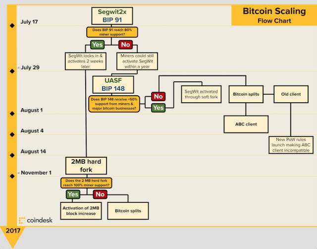 为了提高比特币的交易能力,解决比特币网络的拥塞问题,各方一直争论不休,提出了各种解决方案。在接下来的几周或几天内,比特币社区可能会迎来平稳升级、连锁拆分,或者干脆维持现状。
