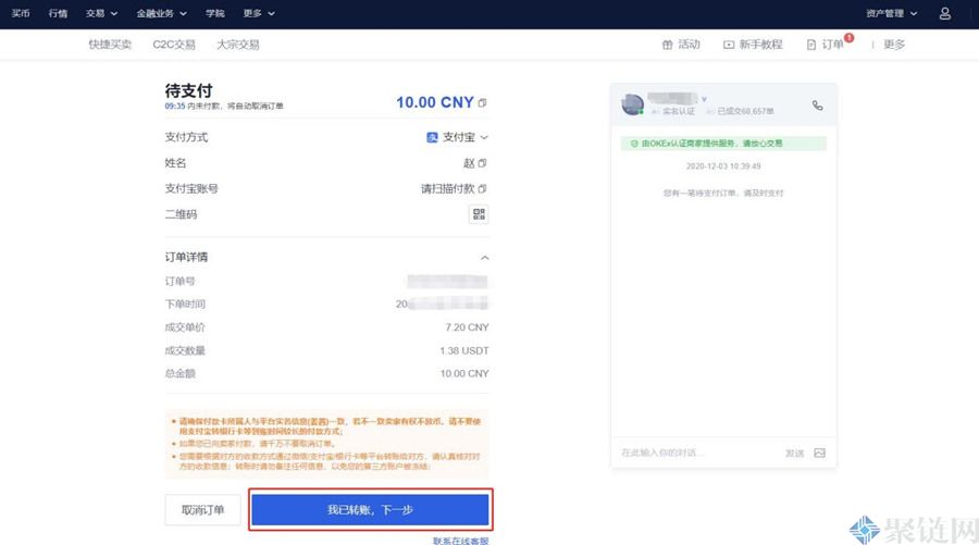 3. 下单成功后,页面会显示卖家的付款方式,按照卖家的付款信息进行线下付款,打款完成后点击底部的我已转账,下一步即可。