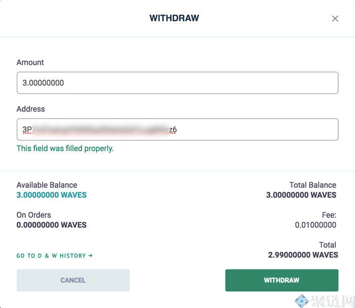 填写完所有字段后,单击“WITHDRAW”按钮。