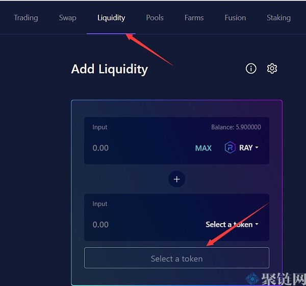 往Pool池中将上一步置换的RAY和USDT配对填好数量。
