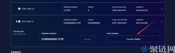 注册Solana钱包、充值SOL资产、置换USDT和RAY以及STEP、提供流动性、质押LP。