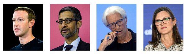 马克·扎克伯格、桑达尔·皮查伊、克里斯蒂娜·拉加德、凯茜·伍德
