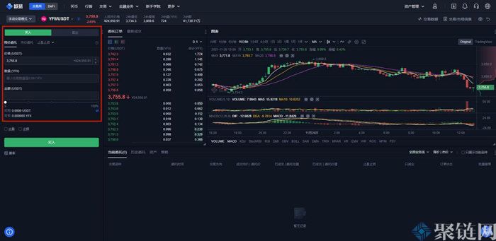 3、以YFII\USDT交易对为例,点击交易对后会出现交易界面,投资者就可以根据需求购买和交易YFII币