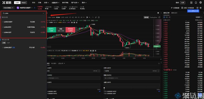 2、一般情况下在交易对中输入LUNA,就会出现欧意交易所支持的相关交易对