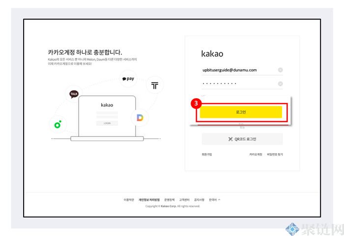 (3) 输入您的Kakao账号和密码后,点击登录按钮。