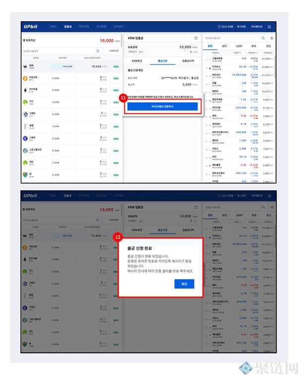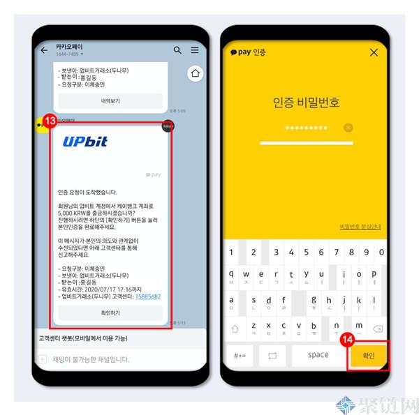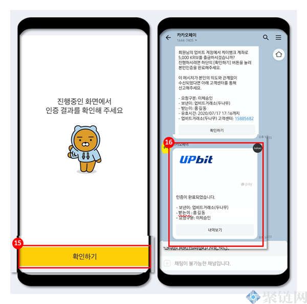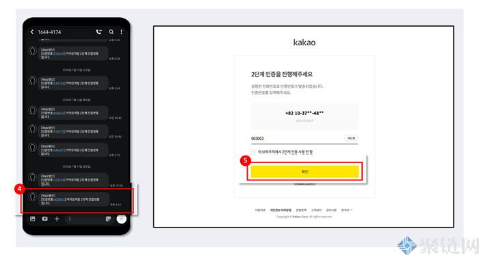 (6)(手机端)运行KakaoTalk app后,查看发送给Upbit的消息中的认证号。
