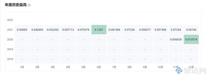 2021年6月16日AMP币出现历史最高价为0.1218美元,2020年12月AMP币出现最高价为0.010574美元。