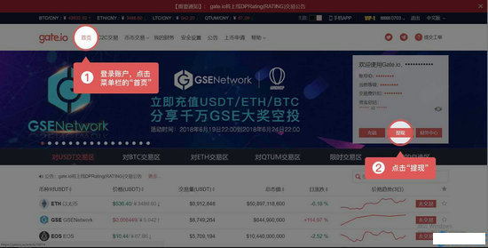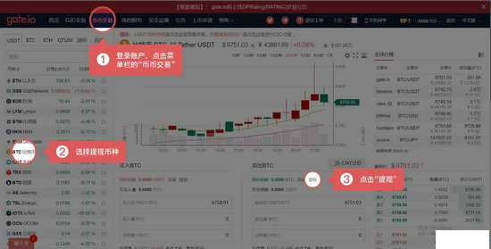 (2)登录账户 — 访问菜单栏“币币交易” — 选择提现币种 — 选择提现 — 点击提现。