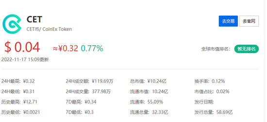 CET币今日价格最新,CET币也称CoinExToken,CET币是需要在交易所进行交易的,也是目前热度非常高的一款加密货币交易,CoinExToken拥有行业各个最新的消息提供给用户。随时都可上述线进行交易。并且可支持挖矿,拥有三条公链让用户专注交易,很多用户都还不知道CET币最新价格是多少以及有没有什么最新消息,以下小编就带来详细的介绍。