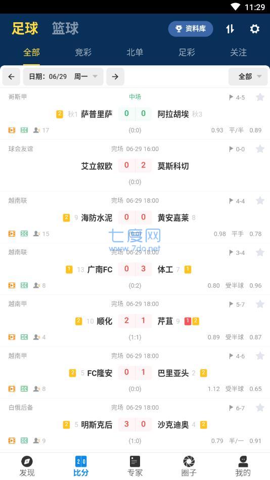 依据赛事的比分列表即可看到一切的竞赛输赢和比分;