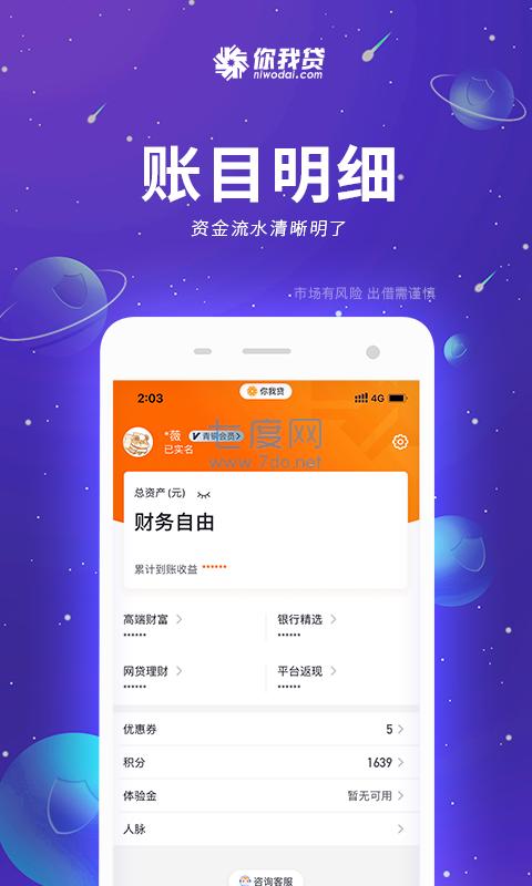 你我贷app官网版是一款由上海你我贷金融信息服务有限公司出品的5000-50000元的小额借贷产品,专供中小企业主和个人提供线上小小额借贷服务,产品基于大数据分析,全线上审核,自动化放款,实现真正的快速放款。