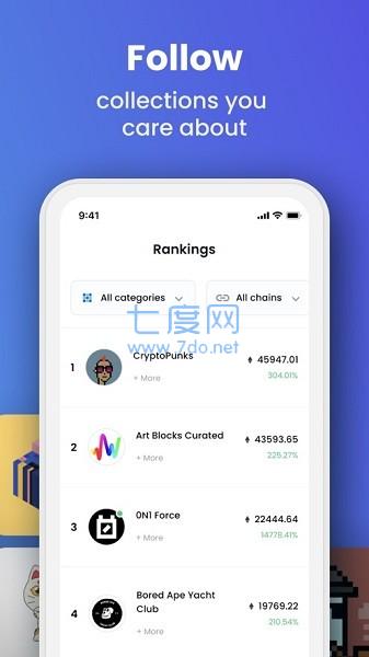 4、一个排名页面,用于跟踪按 24 小时、7 天或历史数量以及其他类型排序的收藏